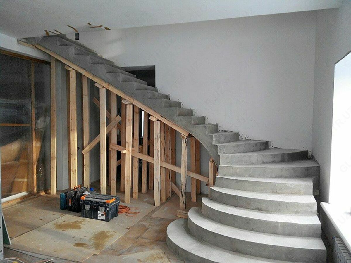 Після завершення робіт слід почекати 2-3 години, після чого обробити прольоти сходів пластичним розчином для армування сходів. Опалубка знімається через 4 тижні – такого часу цілком достатньо для повного застигання бетону. Далі слід займатися оздобленням сходів та сходів, установкою поручнів та огорож.
